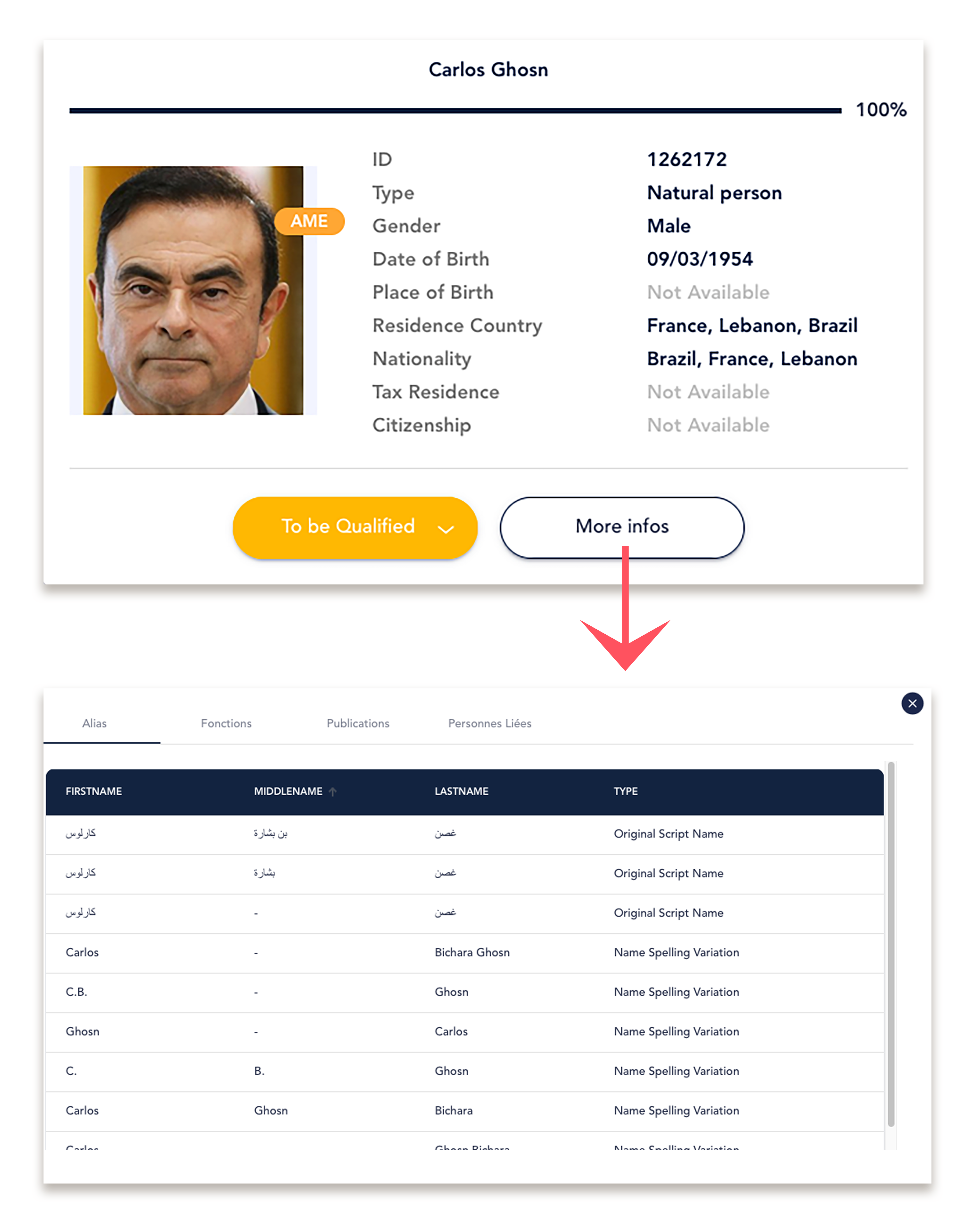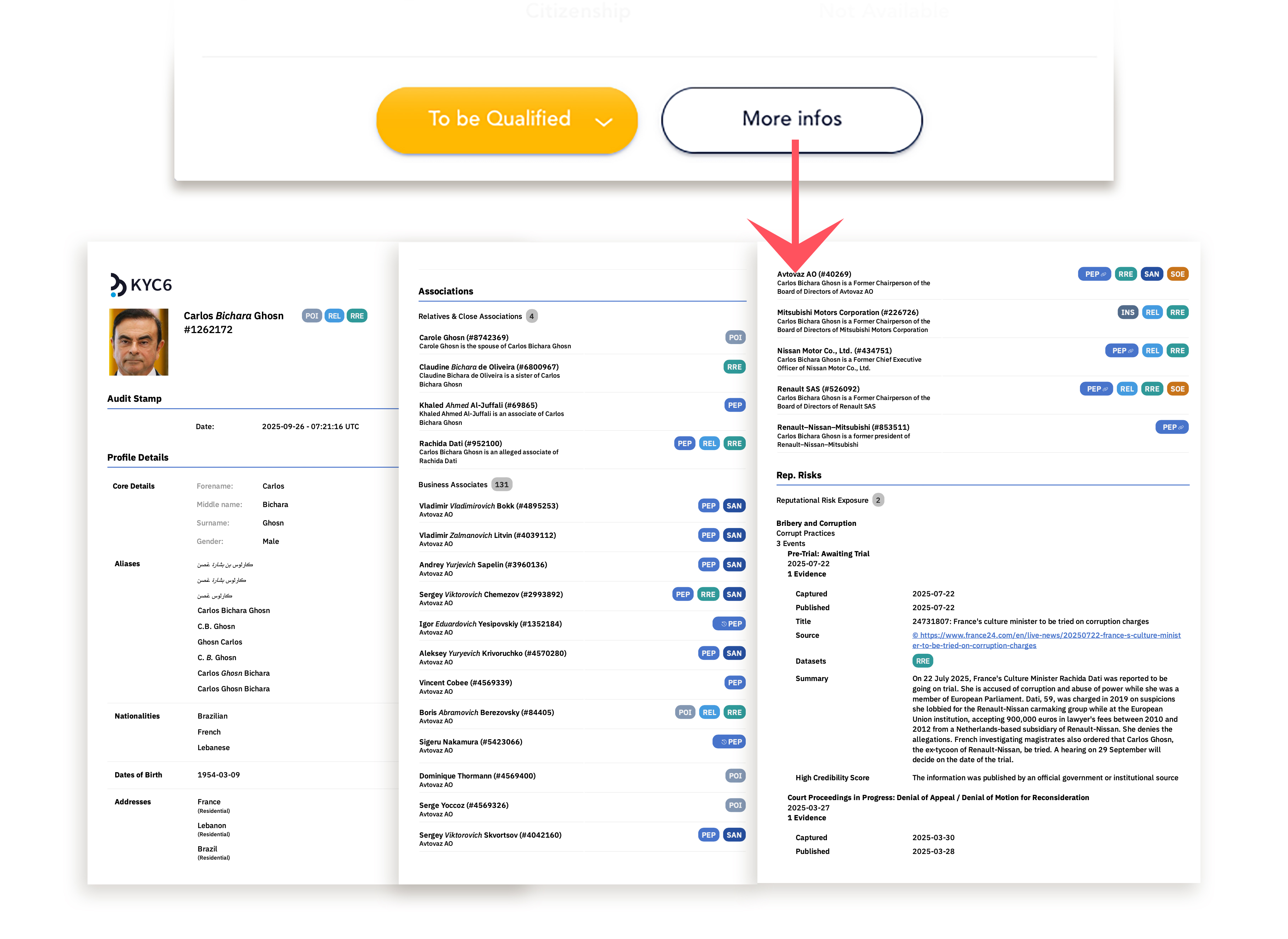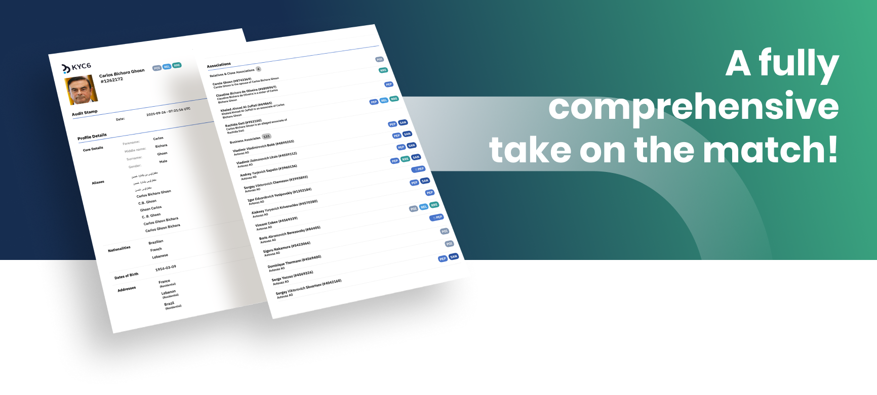 It is now possible to access all the information from match profiles (whether individuals or legal entities) through an exhaustive PDF that is automatically generated and accessible from the match card.